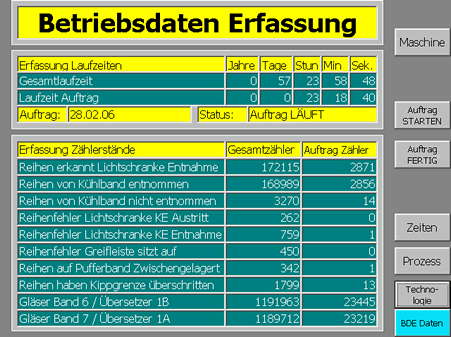 Des Weiteren ist ein großer Vorteil, dass ein Pufferband angesteuert werden kann, falls eine normale Weiterverarbeitung durch eine gestörte Folgemaschine nicht möglich ist. Die Gläser werden auf einem Pufferband zwischengelagert. Nach Behebung der Störung werden diese Gläser wieder in den Arbeitsablauf eingegliedert und normal weiterverarbeitet. Diese Gläser würden ohne dem Pufferband als Glasscherben enden.